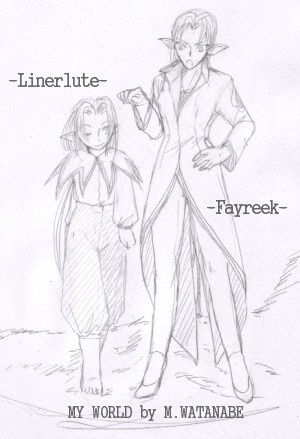 リンさん作、水精ライナリュートと風精フェイリーク(両者とも僕のオリジナルキャラクター)のイラストです。