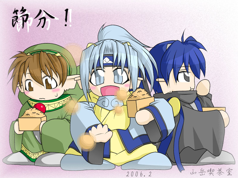戦部龍二さん作、マシェル家三兄弟です。2006年の節分絵としていただきました。タイトルは『コーセルテルの節分』。