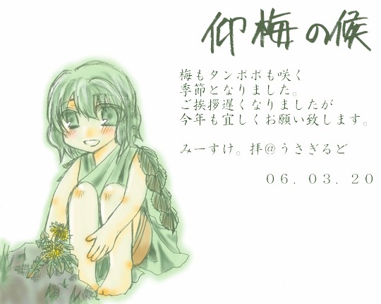 みーすけ。さん作、『仰梅の候』です。年明けにお送りした年賀状への返礼としていただきました。