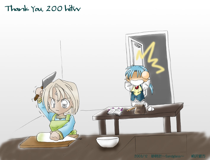 崎沢彼方さん作、お料理エレ師匠です。200Hitのキリ番ニアピンということで、強引にお願いして描いていただきました。