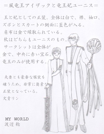 - 竜王の竜術士【資質:火風水木地暗光】。帝都カナネア出身。アルバ帝国を成立に導いた名将で、その武勇から国の守護星であった「明星」の異名を取る。真竜暦紀元前3129年の帝国成立と同時に謀反のかどで投獄され失脚。一月後に釈放され、その後二年間の流浪を経て南大陸へと辿りつく。水竜のククルと出会い、徐々に生きる希望を取り戻しつつあった最中、帝国軍の南大陸への侵攻に巻き込まれククルを喪う。その後、ククルの兄グレーシスに乞われ初めての竜術士となり、死後は「始祖」と諡(おくりな)された。